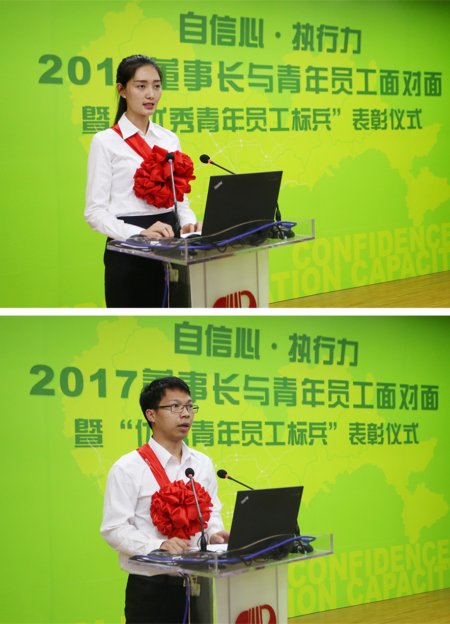 會上,陳宜言董事長對受到表彰的青年標(biāo)兵表達(dá)了衷心的祝賀,希望他們珍惜榮譽(yù)、再接再厲,充分發(fā)揮模范帶頭作用,為廣大青年員工作好表率。最后,董事長作了題目為《自信心與執(zhí)行力》的主題講座,他指出青年員工要樹立自信心,正視自己、善待他人,傳遞陽光正能量,要培養(yǎng)執(zhí)行力,學(xué)會溝通、學(xué)會落實(shí),成長為優(yōu)秀青年。青年員工聽完講座后,紛紛踴躍提問,與董事長進(jìn)行了親密的互動。