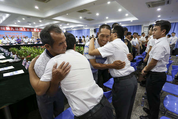 員工擁抱父母