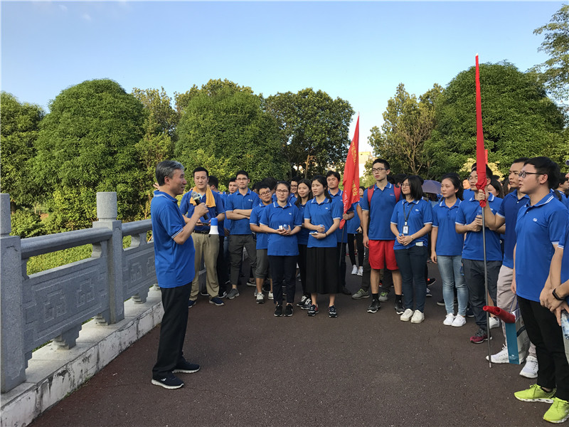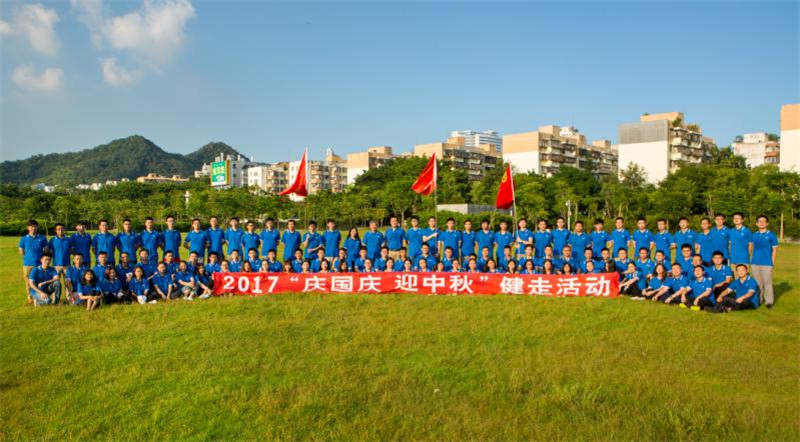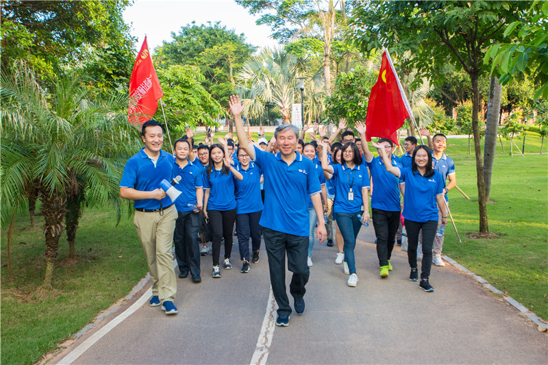 時(shí)節(jié)正初秋,諸君結(jié)伴游。當(dāng)天下午,董事長(zhǎng)陳宜言大師率近150名青年員工統(tǒng)一著裝,參與了“慶國(guó)慶 迎中秋”健走活動(dòng),員工們排著整齊的隊(duì)伍、邁著矯健的步伐、意氣風(fēng)發(fā)地朝著中心公園前進(jìn),健步走隊(duì)伍宛如一條藍(lán)色的市政蛟龍穿梭于中心公園。員工個(gè)個(gè)興致高漲,盡情享受秋游健走之樂。健走期間,董事長(zhǎng)精彩的知識(shí)科普,更是將健步走活動(dòng)的興致推向頂峰。青年員工們?cè)趶?qiáng)身健體之時(shí),也學(xué)習(xí)了更多的知識(shí)?!霸轮杏锌驮址N,世上無花敢斗香”,雖因地域和氣候原因,無菊無桂可賞,但與大師及眾多同事同行,濃濃的“家文化”氤氳其間,可以說,縱使花中第一流,亦可憑此斗花香!