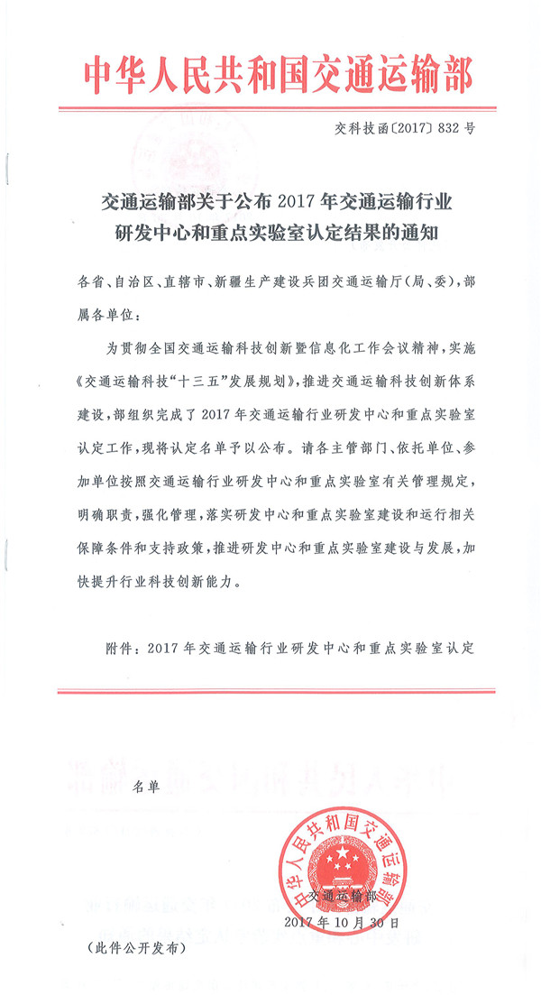 2017年10月30日,交通運(yùn)輸部公布了2017年交通運(yùn)輸行業(yè)研發(fā)中心和重點(diǎn)實(shí)驗(yàn)室認(rèn)定結(jié)果的通知,我公司獨(dú)立申報(bào)的“交通基礎(chǔ)設(shè)施智能制造技術(shù)行業(yè)研發(fā)中心”獲得認(rèn)定。本行業(yè)研發(fā)中心的成功認(rèn)定,是繼我公司于2017年9月成功認(rèn)定為“廣東省新型橋梁結(jié)構(gòu)工程技術(shù)研究中心”之后,在高水平創(chuàng)新平臺(tái)建設(shè)方面的又一新的戰(zhàn)略成果和突破,為技術(shù)創(chuàng)新、成果轉(zhuǎn)化、人才培養(yǎng)、資源共享提供了更加廣闊的發(fā)展空間。