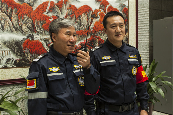 在消防演習(xí)中,模擬大廈主樓9樓突發(fā)火災(zāi)。保安員發(fā)現(xiàn)火情后及時(shí)上報(bào),橋業(yè)物業(yè)啟動(dòng)消防應(yīng)急預(yù)案。應(yīng)急廣播傳出“主樓9樓發(fā)生火情,請(qǐng)各位不要慌張,立即從樓梯撤離至大廈地面停車場(chǎng)南區(qū),不要使用電梯。”樓里濃煙彌漫開來,辦公人員聞?dòng)嵑?,迅速從樓梯撤離,消防滅火、疏散警戒、秩序控制和后勤保障小組迅速就位,各項(xiàng)報(bào)警、滅火、救援、疏散工作緊張有序的開展,控制了初期火情。當(dāng)發(fā)現(xiàn)一臺(tái)小汽車堵住消防通道時(shí),救援組使用先進(jìn)的移車設(shè)備,在一分鐘內(nèi)將小汽車移開,及時(shí)疏通了生命通道, 待義務(wù)消防員趕到后完全撲滅了大火。