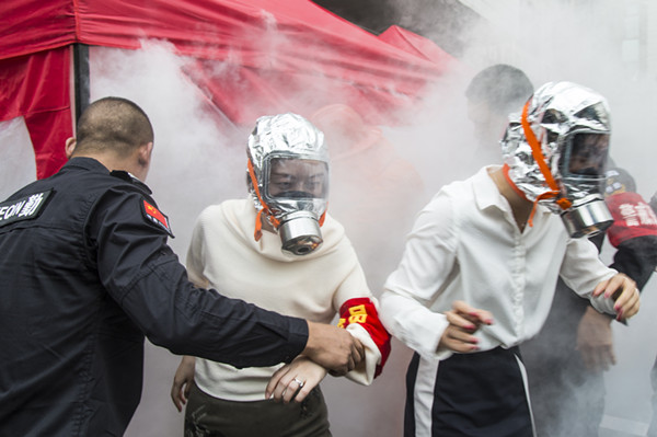 滅火毯、防煙面具、獨(dú)立無線煙感報(bào)警器、投擲滅火彈、環(huán)保水基型滅火器、穿越火災(zāi)煙霧場(chǎng)景帳篷等消防知識(shí)講解精彩紛呈。
