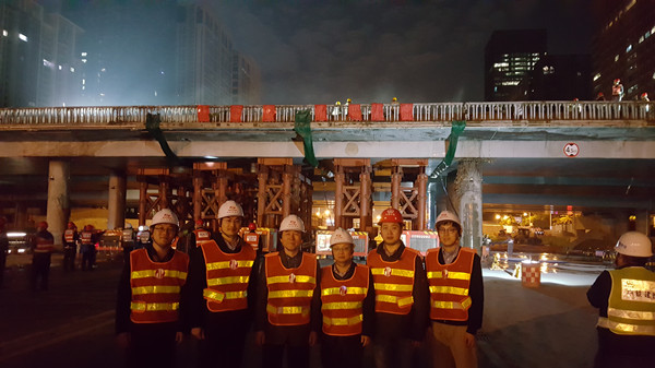 以市委領(lǐng)導(dǎo)、軌道辦及地鐵集團提出的要求及目標(biāo)為前提,經(jīng)過現(xiàn)場考察、仔細(xì)研究以及結(jié)合SPMT模塊車快速架設(shè)彩田鋼便橋的成功經(jīng)驗,在充分考慮周邊居住環(huán)境及交通環(huán)境的需要等因素條件下,我公司董事長陳宜言設(shè)計大師提出采用SPMT模塊車拆除方案,充分利用SPMT模塊車在較短時間內(nèi)移動橋梁的技術(shù)能力,大大減少了對交通的干擾、交通恢復(fù)時間,提高了工地安全,降低了環(huán)境影響,提高了施工能力。該方案得到了各級領(lǐng)導(dǎo)的肯定。隨后,我公司做了大量的工作,包括結(jié)構(gòu)的安全計算,結(jié)構(gòu)物的臨時加固以及報請地鐵集團增加《拆除彩田立交橋?qū)n}報告》等工作,并得到地鐵集團的認(rèn)可。
