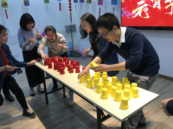 最后是精彩的游戲環(huán)節(jié),通過簡(jiǎn)簡(jiǎn)單單的紙杯設(shè)置了多個(gè)趣味十足的游戲,大家一同參與,緊張刺激而又其樂融融。