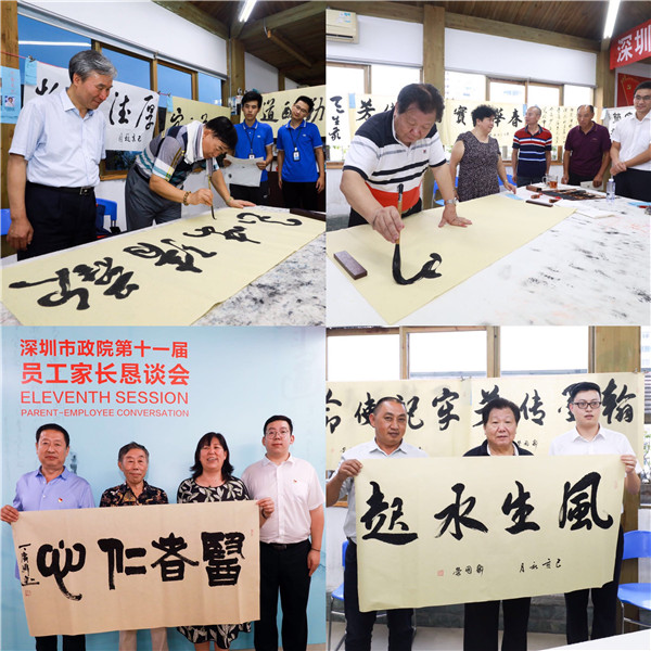 懇談會后,家長們來到公司八樓“職工之家”,參加了書畫交流活動。鄒國榮、董兵團、丁廣偉、徐怡等多位書畫家圍繞家長懇談會主題,現(xiàn)場揮毫潑墨,為家長們即興創(chuàng)作,一幅幅遒勁有力的書法和栩栩如生的畫作,展現(xiàn)了藝術(shù)家深厚的文學修養(yǎng)和藝術(shù)功底,書畫現(xiàn)場意趣盎然、墨香四溢。