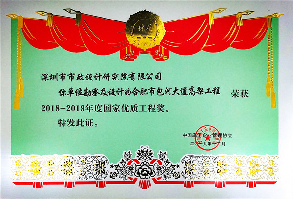 近日,由公司勘察設計的合肥市包河大道高架工程獲得2018-2019年度國家優(yōu)質(zhì)工程獎。