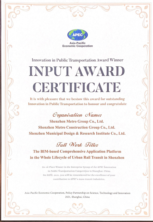本次競賽以“基于智能化的多層次公共交通一體化發(fā)展”為主題,鼓勵參賽者針對公共交通運輸系統(tǒng)出現(xiàn)的具體問題,運用研究領(lǐng)域的專業(yè)知識,提出具有新穎性、可行性、實用性的優(yōu)化方法或解決方案。自競賽啟動以來,組委會收到來自中國、菲律賓、新加坡、泰國、中國香港等經(jīng)濟(jì)體的參賽作品。深圳市政院智慧數(shù)據(jù)中心的科研成果眾多作品中脫穎而出,經(jīng)多國專家評審,《深圳市軌道交通工程全生命周期BIM技術(shù)應(yīng)用綜合平臺》以總分第一名的成績獲得本次競賽最高獎項一等獎,《基于數(shù)字挖掘的城市公交專用道路資源動態(tài)配置方法研究》獲得二等獎。