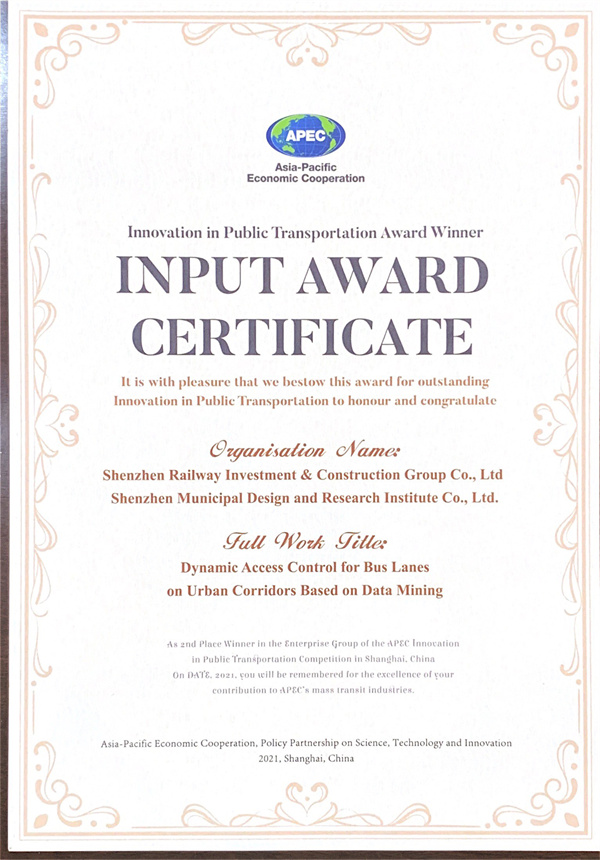 6月19日,亞太經(jīng)合組織(APEC)公共交通科技創(chuàng)新競賽頒獎儀式在上海舉行,深圳市政院作為技術(shù)支持單位提報的兩項參賽作品分別獲得賽事最高獎項一等獎和二等獎。此次獲獎,是深圳市政院在企業(yè)機(jī)構(gòu)重組后面向公共交通科技創(chuàng)新領(lǐng)域取得的首個亞太區(qū)域成績,也標(biāo)志著深圳市政院公共交通創(chuàng)新發(fā)展研究朝國際行業(yè)領(lǐng)先水平又邁進(jìn)了一步。